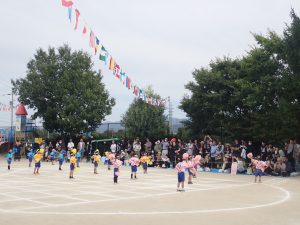 後半は年中さんと年長さんのかけっこ、玉入れに続き、年中さんのダンスです。