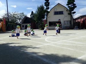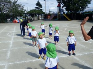 さて、今日は満3歳児つぼみ組さんの運動会の練習の姿をご紹介します。先週の練習の様子です。