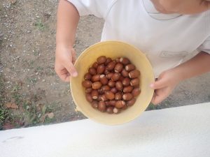 バケツにたくさん拾った年少さん。「ビニール袋ください!」おうちに持って帰るのだそうです。