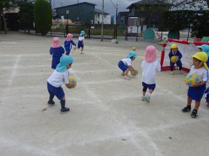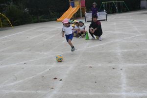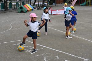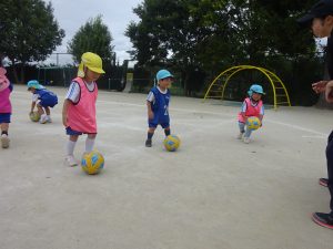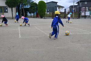年中さんもまずは自由にボールを転がして、慣れるところからスタートです。