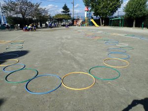 園庭一面に並べられたフラフープ。これは一体何かというと…