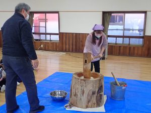 みんなの力でおもちがつきあがりました。
