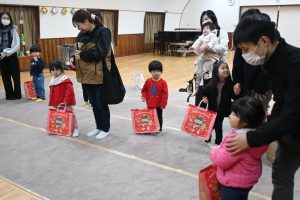 楽しかったクリスマス会も終わりのときが来ました。みんなでさようならのあいさつをしました。次に会うのは一日入園のときです。その時まで、風邪をひかないように元気で過ごしてくださいね。