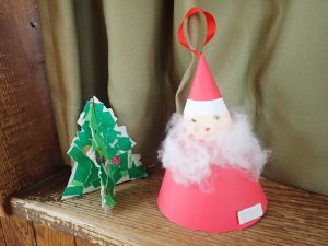 続いて、幼稚園の子どもたちが作ったクリスマスの飾りを紹介し、みなさんに見ていただきました。